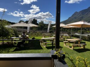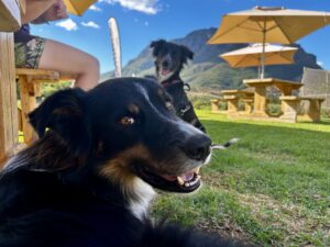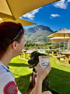 Banhoek Farmstall opens every day at 7.30am, perfect for cyclists to grab a coffee and maybe a breakfast before or after their ride, they also stay open until 5pm for anyone that has been out doing wine-tasting and needs a coffee before driving home. The tables are set far enough apart so that you never feel crowded and your dogs don’t feel the urge to interact with other doggie visitors or customers. Most of the outside tables are on the lawn which is also perfect for the dogs to lie down.
