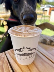 Being active with your best friend and being able to go for lunch or breakfast with them is becoming increasingly the norm. Recently we went to Banhoek Farmstall on the Helshoogte Pass. You can spot the farmstall from miles away with the big “Farmstall “painted on the roof, as we turned into the parking, we saw the signs for roosterkoek and our mouths started towater. We decided to take Cobalt and our foster girl Lola, what better way to teach Lola how to teach how to behave at a coffee shop or restaurant than to let her tag along with Cobalt who already knows the ropes and who is an old hand at sort of “behaving” around people, food and all the delicious smells passing by our table.